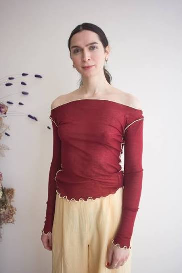 Eliza Faulkner's Jess Top is a new must-have for all four seasons! The Jess features the brand's signature contrasting lettuce edge detailing and has a flattering wide boat neckline. Made from a luxurious blend of merino wool and tencel, the Jess is super fine and so easy to wear under other tees, and dresses too. A great layering piece, or one to wear on it's own!