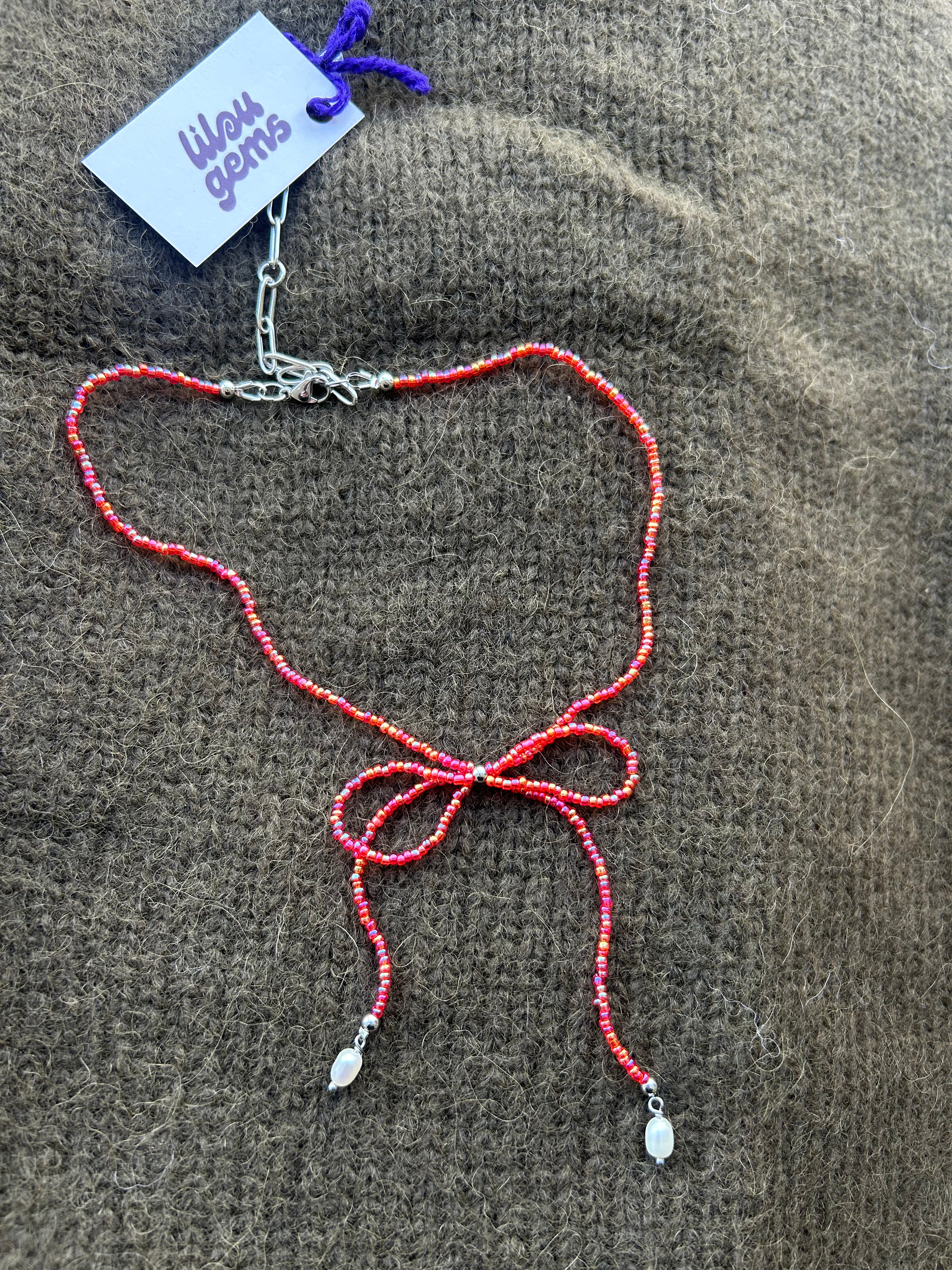 The cutest coquette-core beaded bow necklaces by LILOU Gems!