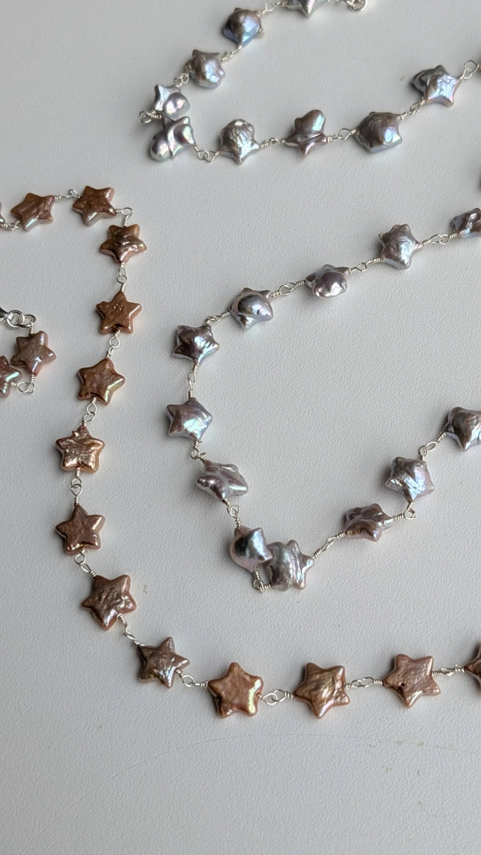 The Asteria Necklace by Atelier Melrai is a collection of star-shaped freshwater pearls linked together with .925 sterling silver components.