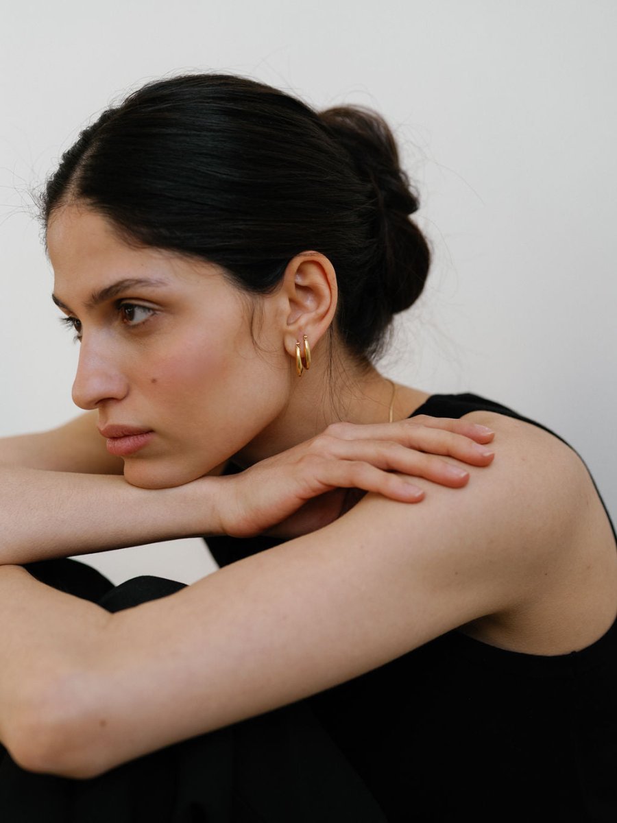 The Letti Hoops by Lisbeth are your go-to everyday earrings, designed with a ribbed finish that adds subtle texture and shine. Their compact 12mm size and comfortable post closure make them effortlessly wearable from morning to night.