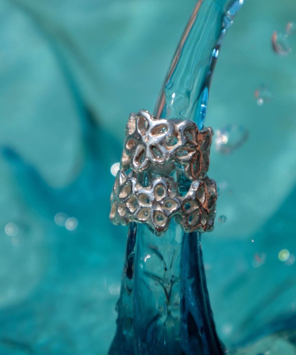 Wild Silver Watery Flower Ring