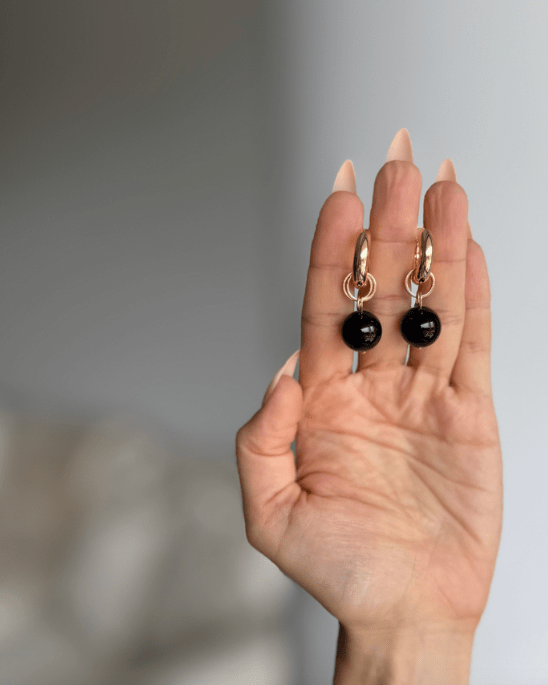 The Isola Black Tourmaline Earrings by WILYMI are a design that finds its rhythm in rounded silhouettes—spheres that speak to wholeness, continuity, and the soft geometry of nature itself. Black Tourmaline is often associated with grounding.