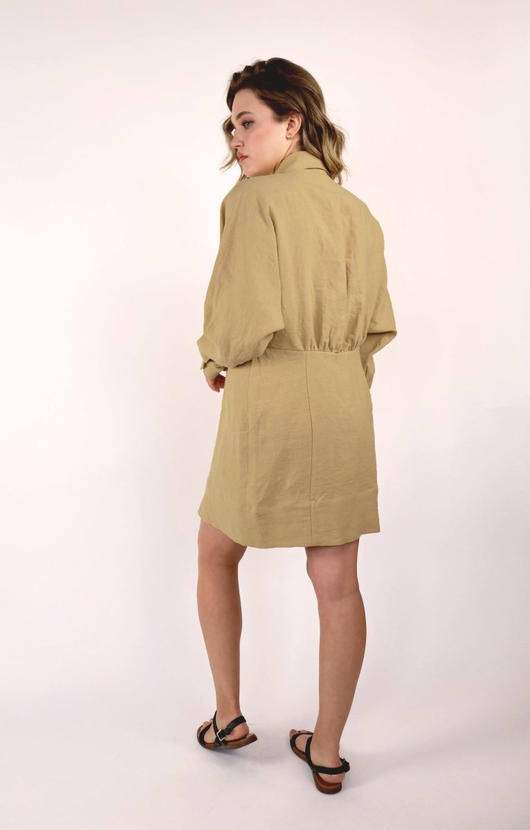 The Ava dress from Korelli is an elevated take on a classic shirt dress. This dress features a relaxed cut with exaggerated dolman sleeves, creating an eye catching silhouette. Slight gathering at the waist creates a refined look that doesn't lose your shape while still retaining a comfortable fit that is simply irresistible.