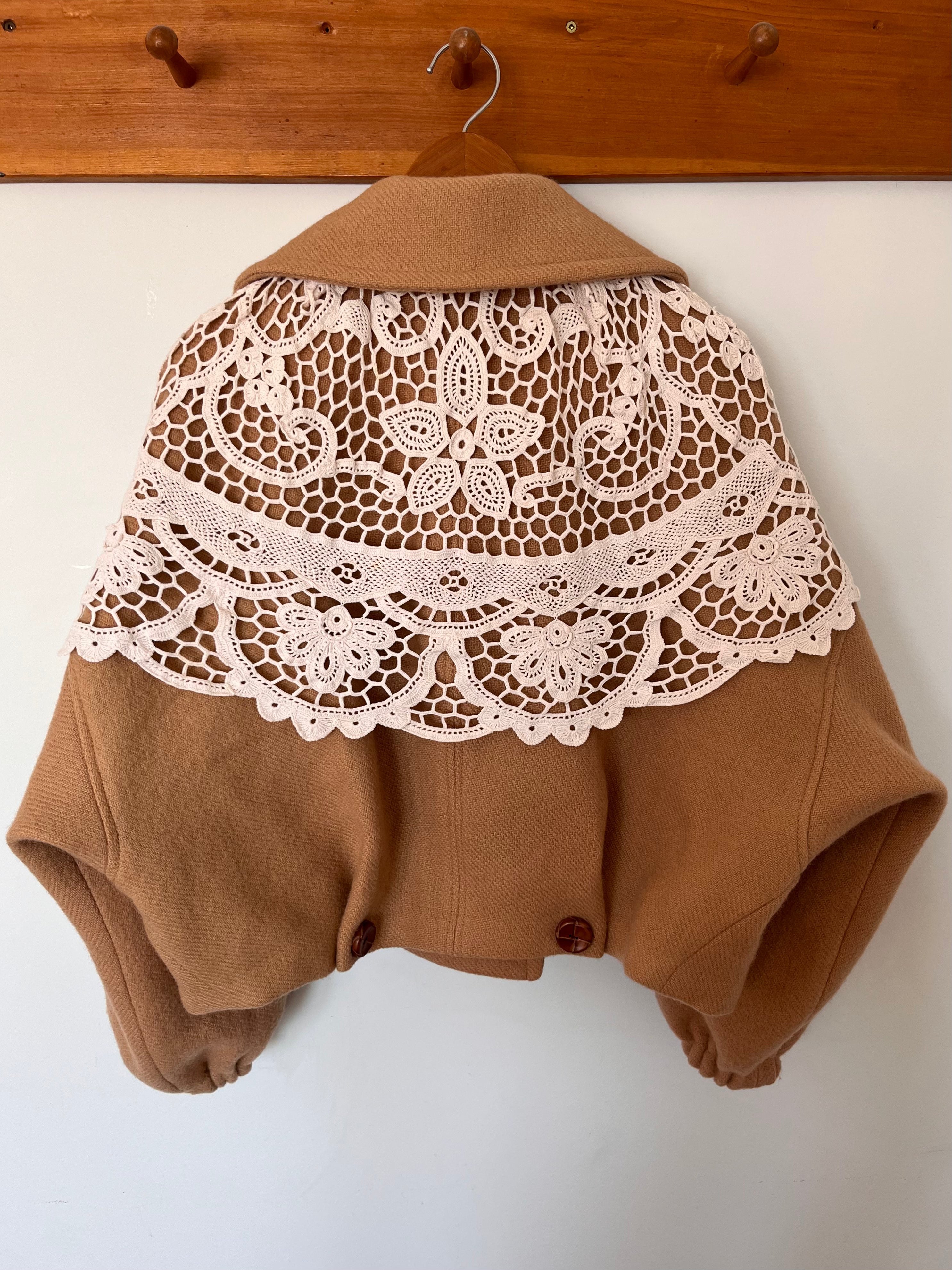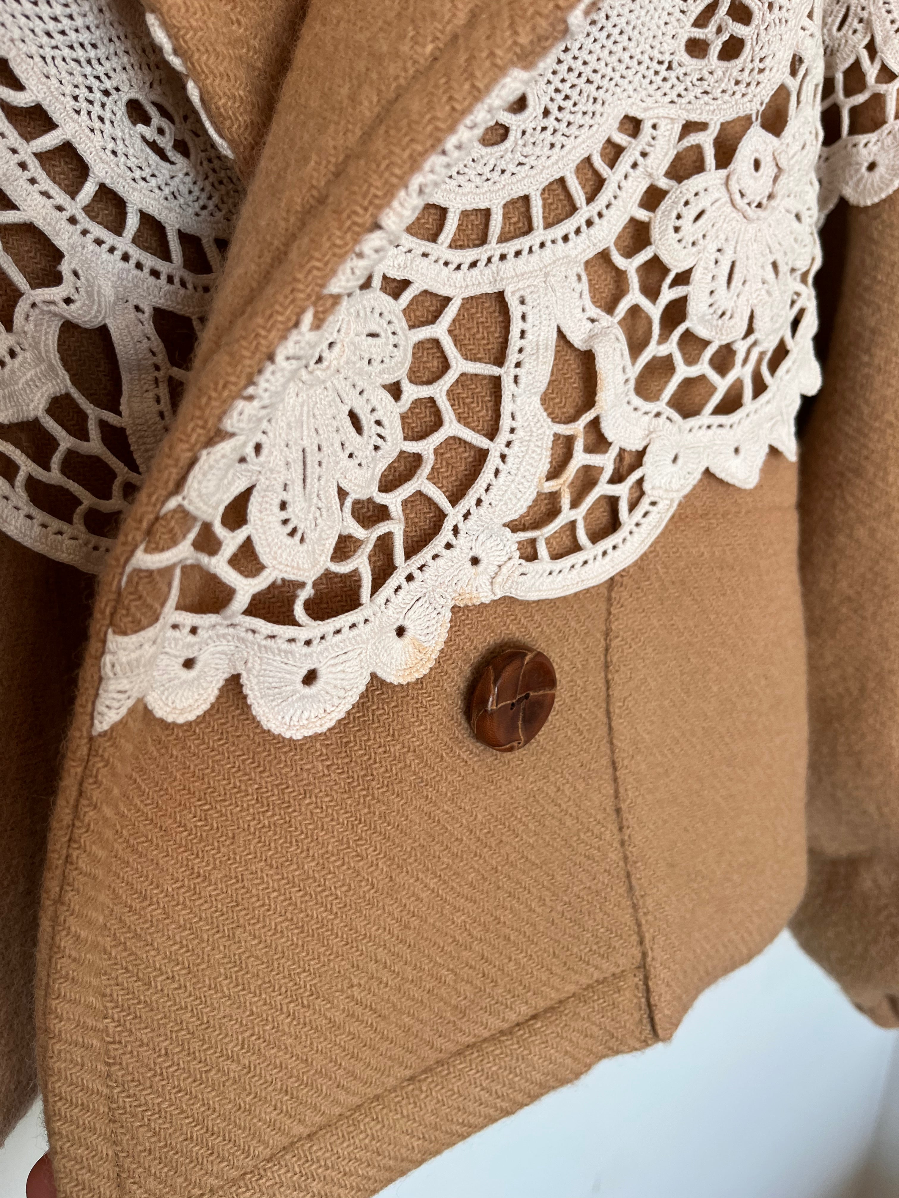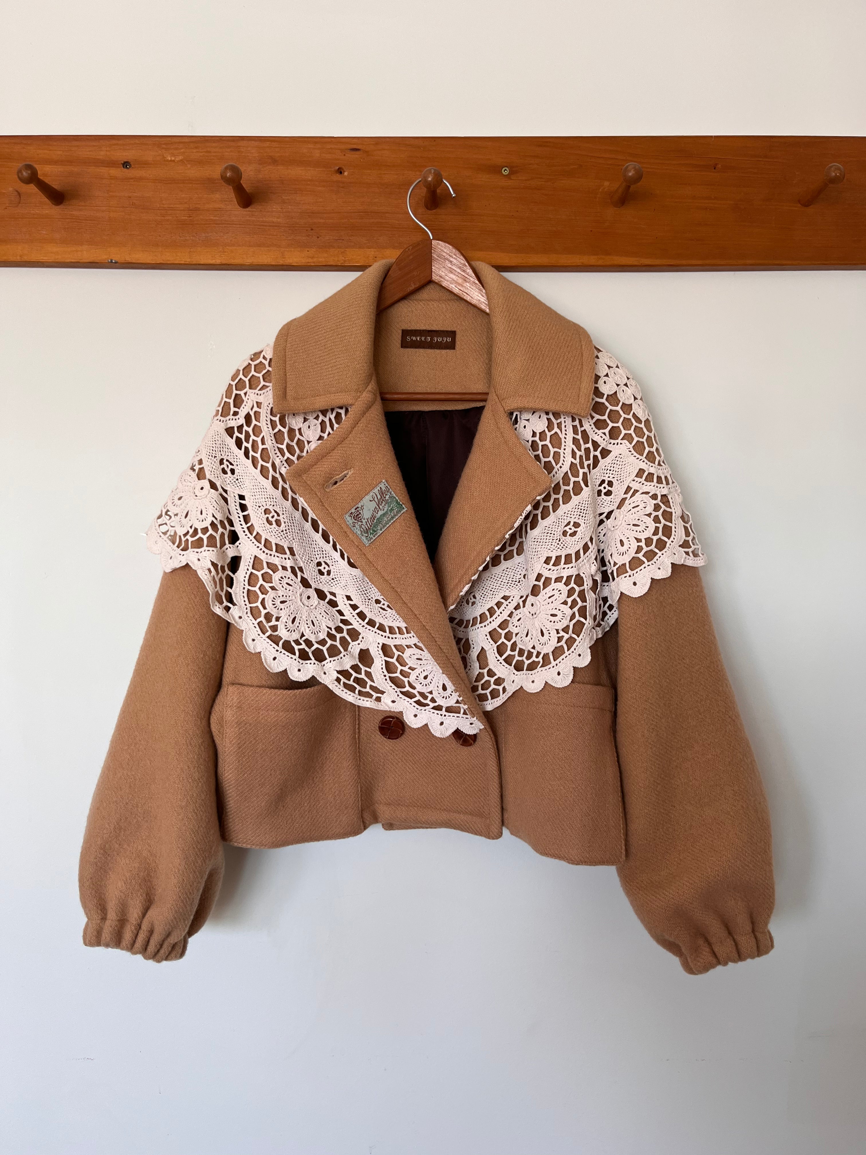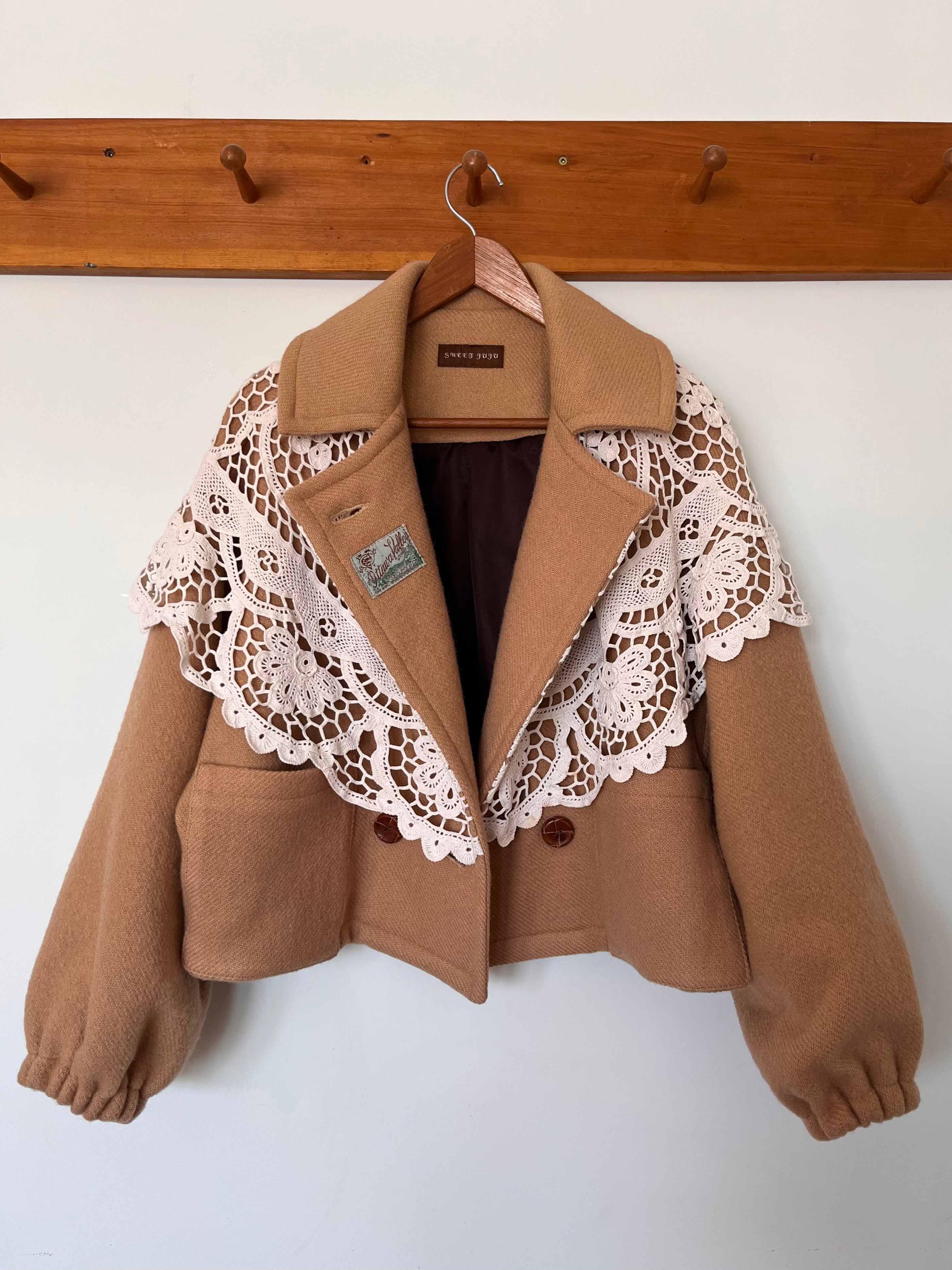 Sweet Juju Wool Blanket Jacket (Camel with Lace Shawl)