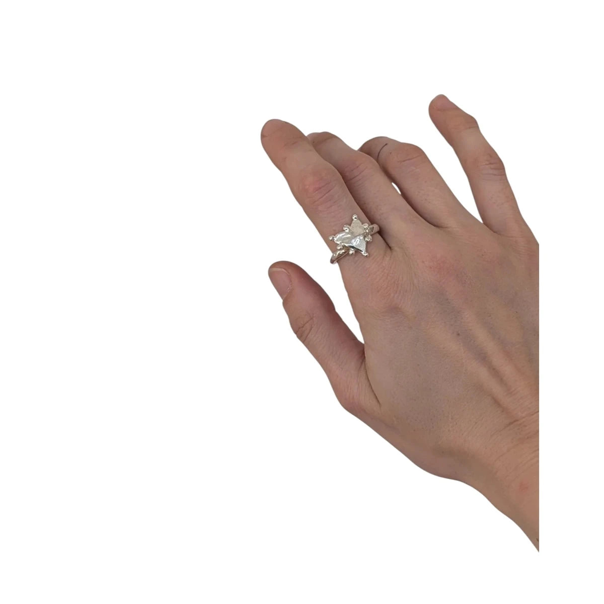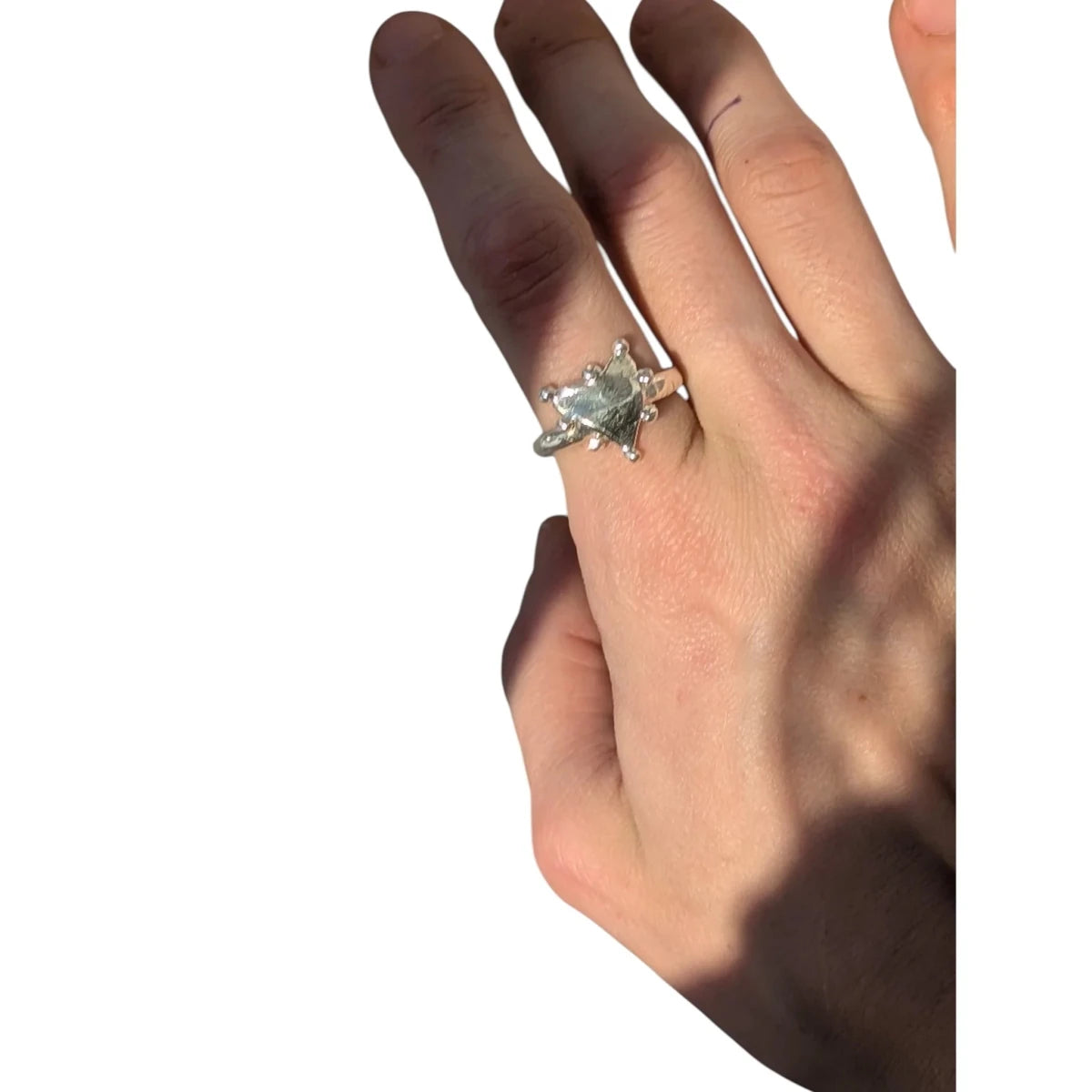 A hand carved heart adorned with little dots on a solid sterling silver band by Atelier Melrai.