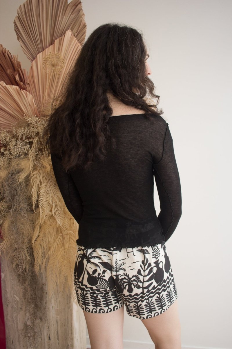 Marigold's Chester Shorts are perfect for a casual yet cool spring outfit. These shorts are made out of a lightweight rayon and linen blend that is breathable and soft and in a black on cream tropical print that is exclusive to Marigold. P.S. The Chester Shorts have pockets for even more practicality!