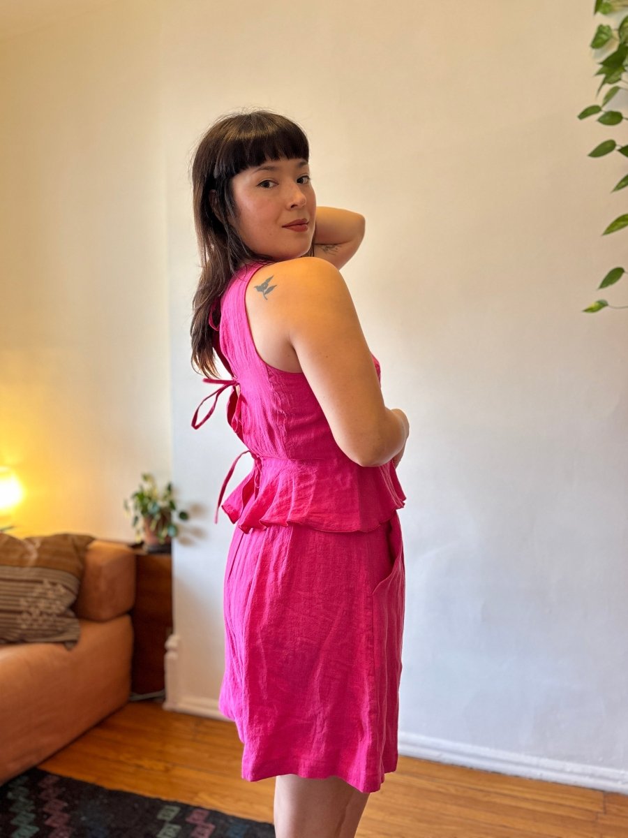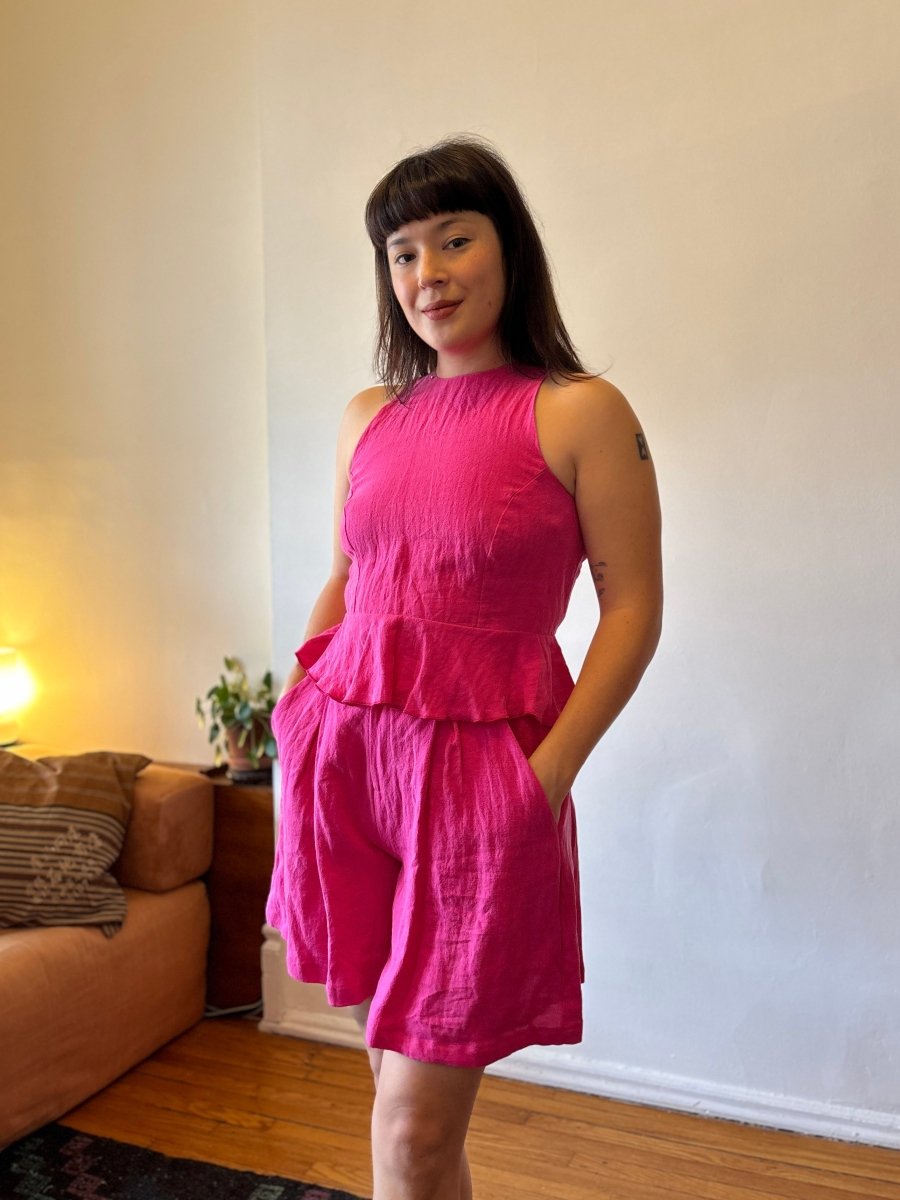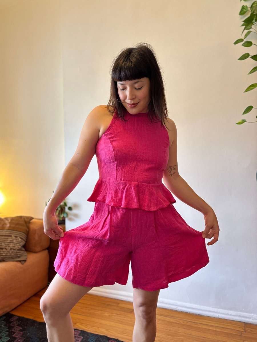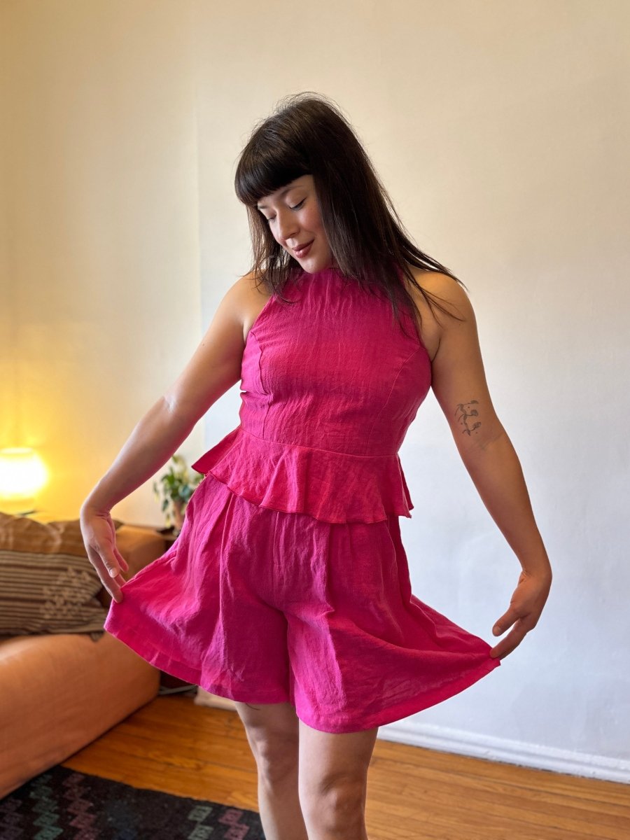 The Cléa shorts by Marigold are a breezy, wide-leg short that come in a bright punchy pink linen to instantly boost your mood! They're lightweight, relaxed, and designed with roomy pockets! With subtle pleats along the front, the Cléa shorts can definitely sneak into dressy territory when paired with the matching peplum top for a sweet summer set!