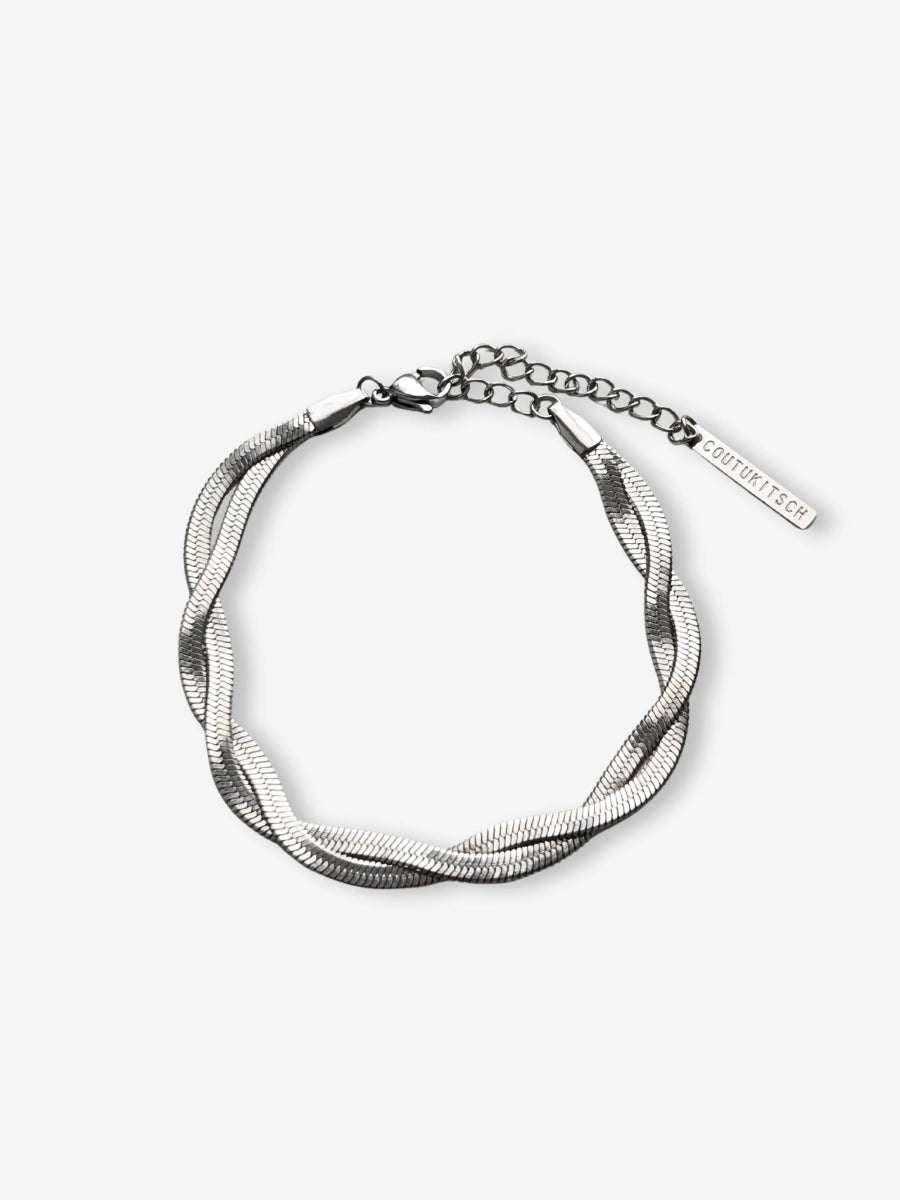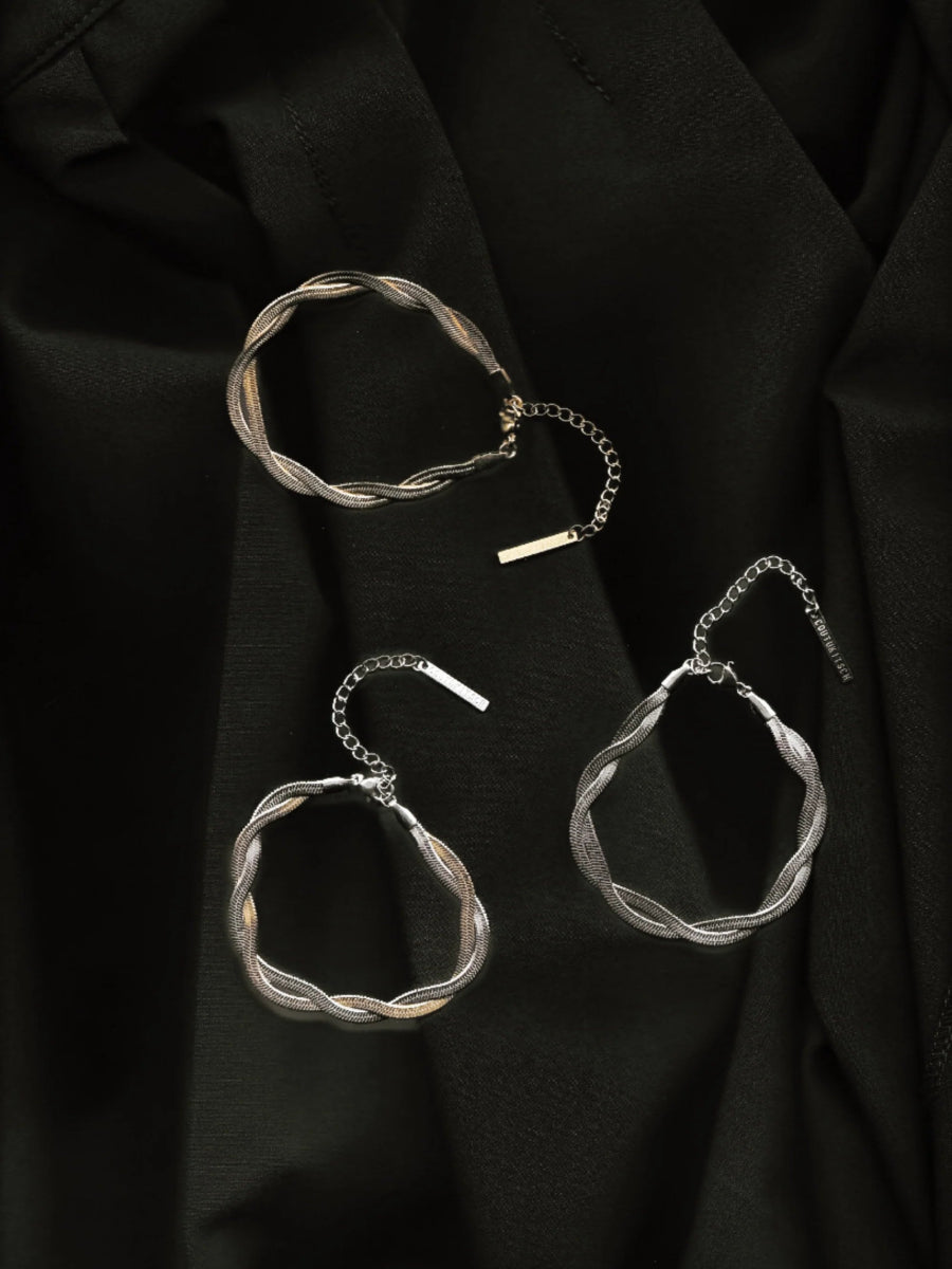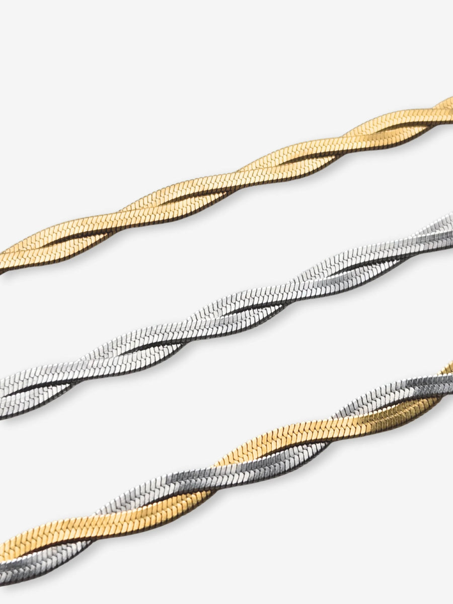 The Blythe bracelet from Coutukitsch is a twisted snake chain bracelet based off their popular Blythe Necklace! Available in gold plate, stainless steel or a combo of both!