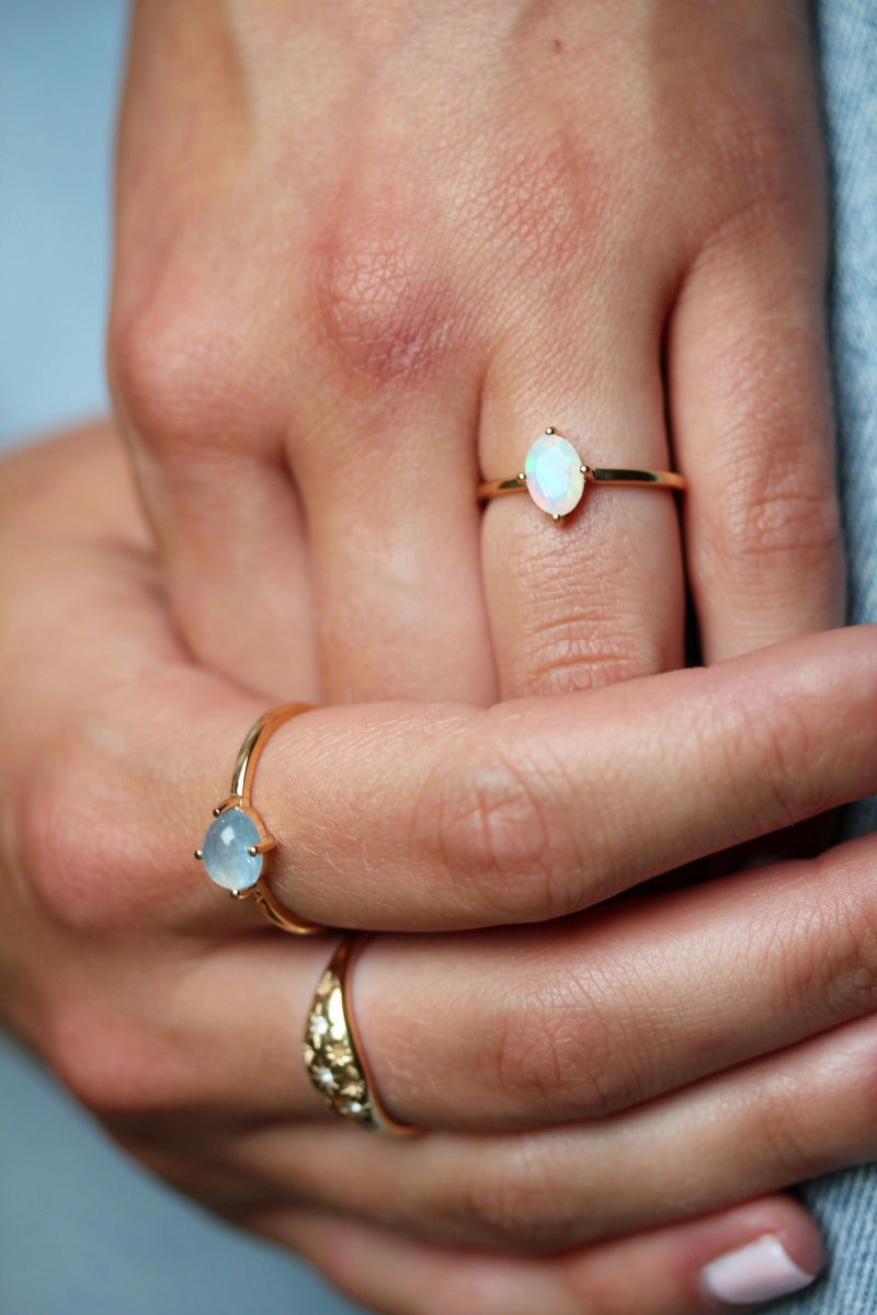 Little Gold Oceanic Ring (Aquamarine)