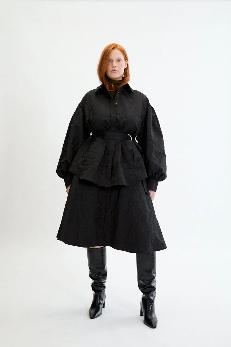 Is it a shirt? Is it a jacket? Well baby, it's both! The Laurence Jacket is crafted from a beautiful black floral fabric and features oversized sleeves, front patch pockets and a removable waist belt. We love the adjustability features and it's classic oversized silhouette. Pair with the Eliza Faulkner Yves Pant for an ultra cool monochromatic fit or simply wear the Laurence as a jacket a statement piece. It's effortlessly cool design put this jacket at the top of our wish list!