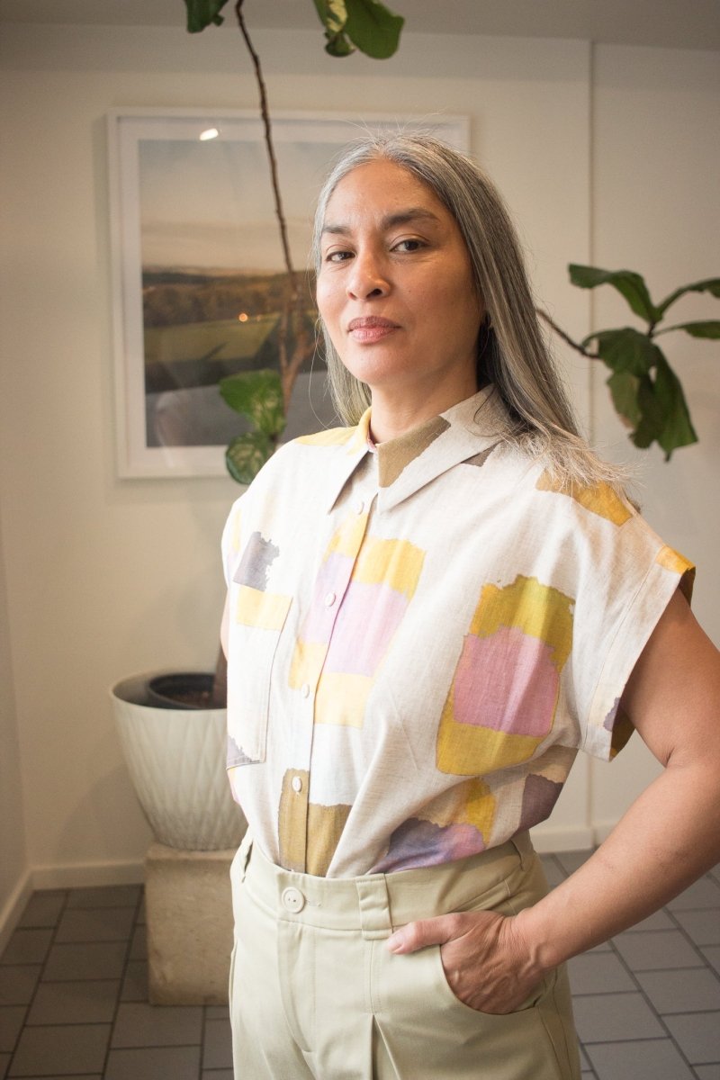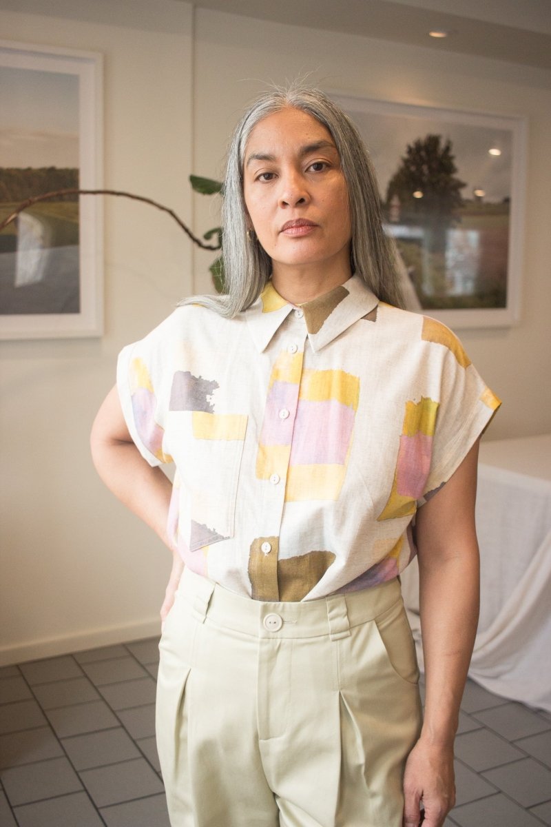 With its loose fit and centered button placket, The Haley Shirt is a cut that's one of the iconic pieces at Eve Gravel that we see season after season in fresh new exclusive prints! With a right side pocket, it can be worn buttoned for a structured look or open as an over-shirt for a casual look. Slip it into high-waisted trousers for a more fitted and tailored look. These new prints are designed right in Eve Gravel's Mile-End studio in Montreal, making this classic button-up something to covet and adore!