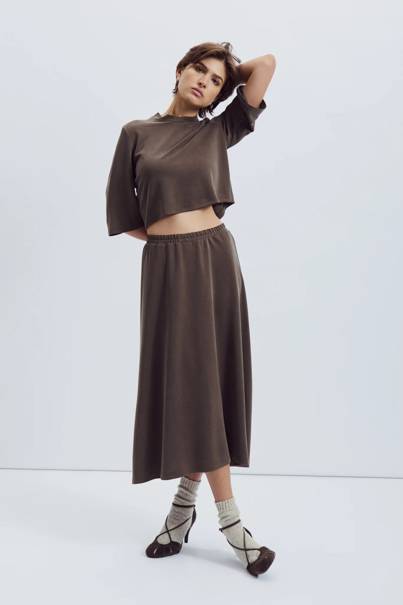 The Joan is a long, flowing skirt with an elasticated waistband for a comfortable and practical fit. Its lightweight, draped cut delicately hugs the silhouette, creating an elegant and timeless look. The soft, sumptuous velvet fabric is of incomparable quality. If you're looking for a refined basic that's a little thicker for the cooler months, the Joan is for you!