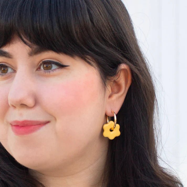 Les boucles d'oreilles Ceramic Pattie de Meghan MacWhirter sont une adorable dose de fantaisie ! Ces boucles d'oreilles marguerites en céramique sont faites à la main et peintes à la main. Ils sont parfaits pour ajouter de la couleur à un look neutre ou pour un glamour néon maximaliste !