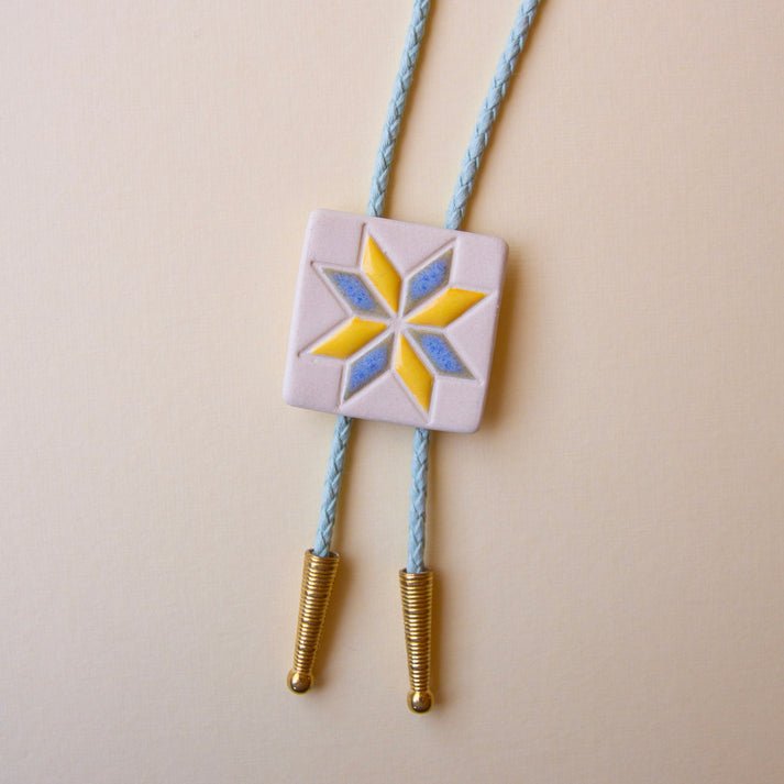 Meghan MacWhirter Quilt Square Bolo Tie (Yellow and Blue)