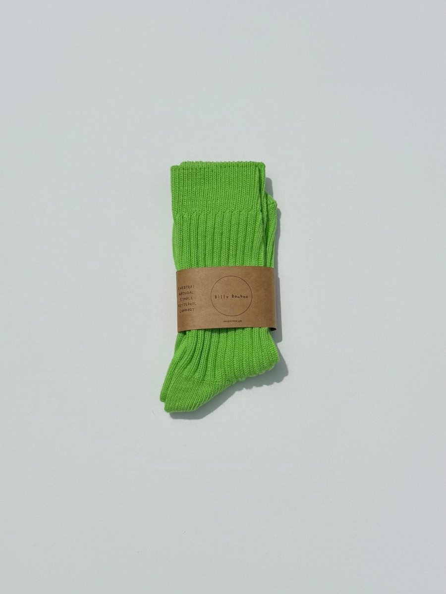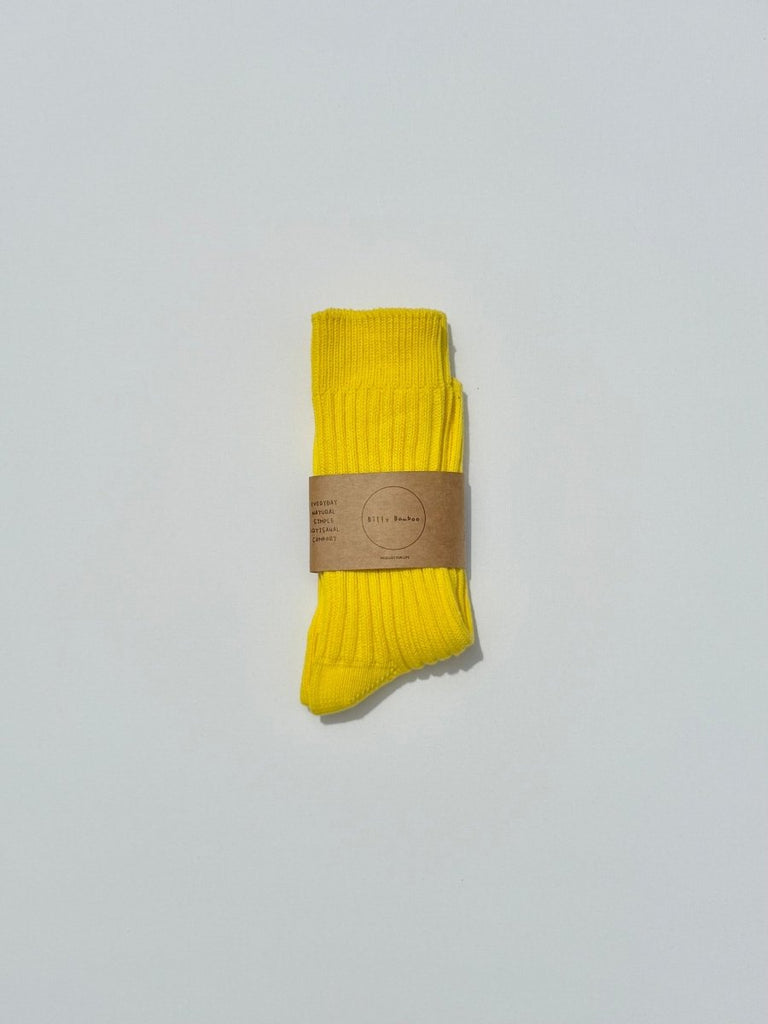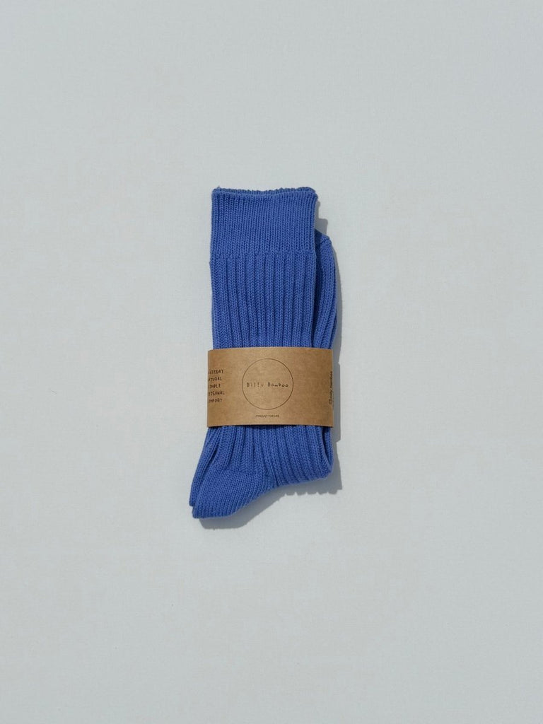 Billy Bamboo's Ribbed Cotton Socks are a soft cotton blend sock which go up to about mid calf depending on your height. Available in a variety of bright colours!
