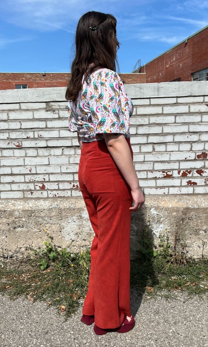 It's time to boogie again! The Birds of North America's velvety Bloodfool Pants are BACK! These 70s-meets-90s flares have a high waist, fly front closure and button waist. We love the practical and big patch pockets on both the front and back. The velvet fabric has a stretch to it that will make these pants fitted on your booty before gliding down to the floor. These would be great for work with a neutral blouse or a fun night out with a tank top and platform boots.