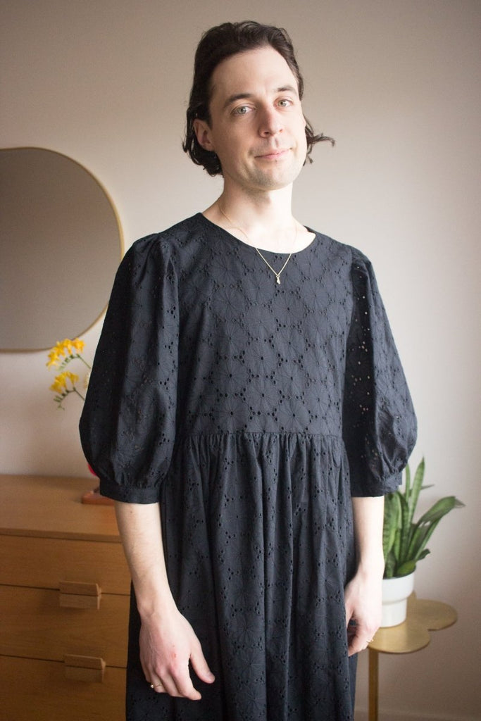 Birds of North America's Bluebonnet dress is an easy breezy babydoll made in a spectacular cotton eyelet. This dress features full sleeves that gather into a cuff giving it an elevated feminine flare, while the in-seam pockets offer a practical element for every day wear. The single button closure at the back makes this dress easy to throw on and go about your day with ease!
