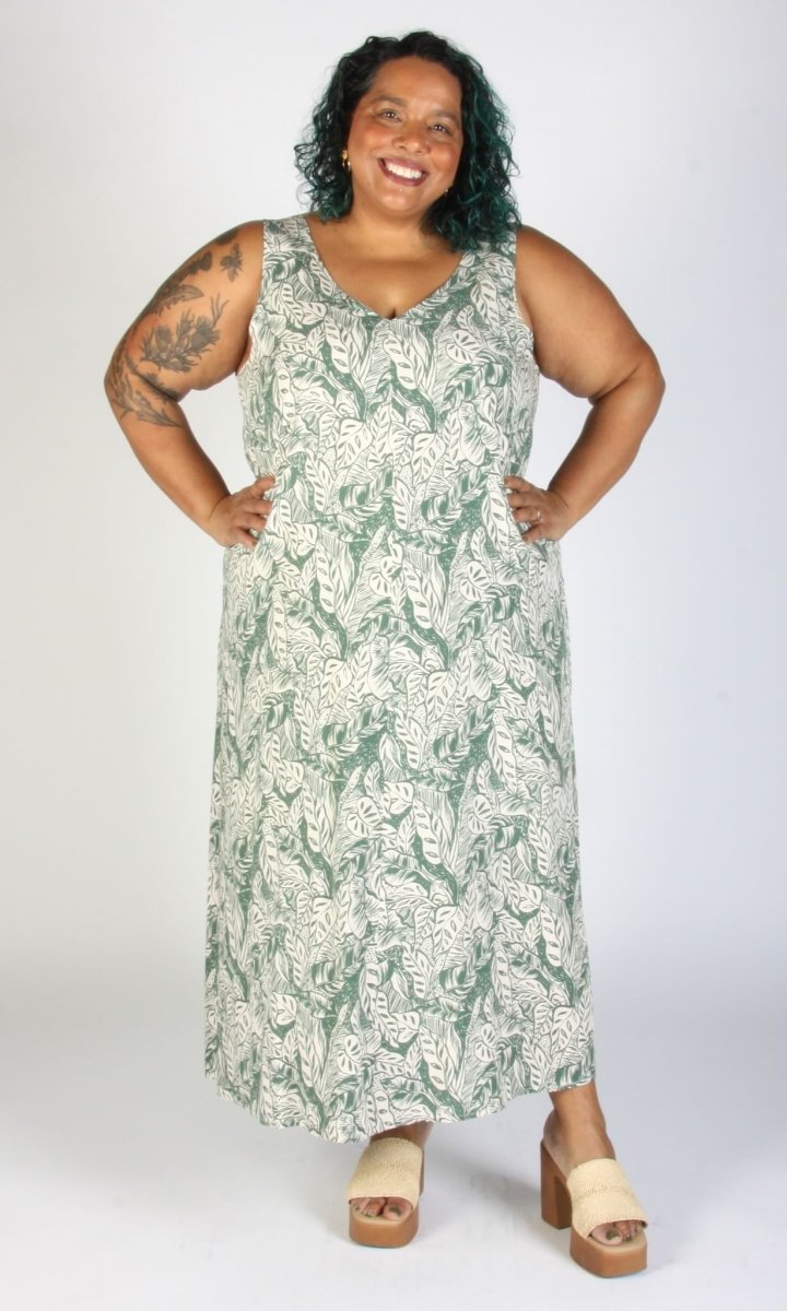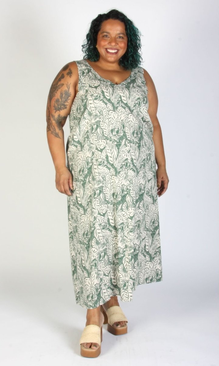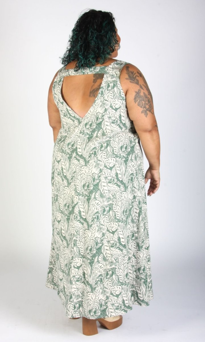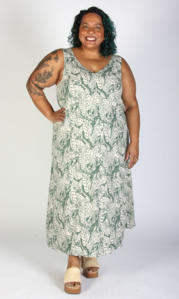 The Brushfinch Dress by Birds of North America is a breezy, A-line dress with a deep V at the back and a strap across the shoulders. Made from a rayon fabric that is incredibly soft and light, and flows around you in all the right ways, featuring a beautifully illustrated sage green fronds on a creamy background! Wear this dress casually with some cute sneakers and socks or dress it up with a kitten heel for a playful event-ready outfit!
