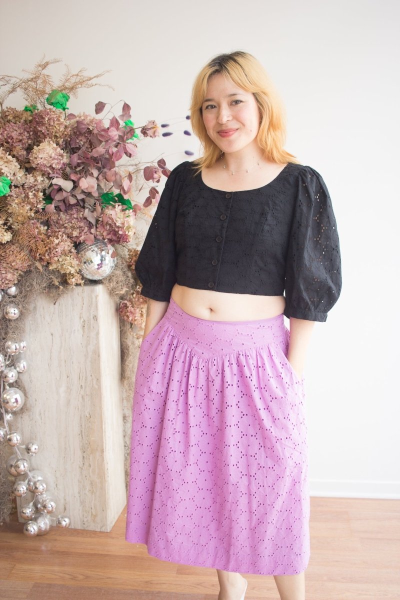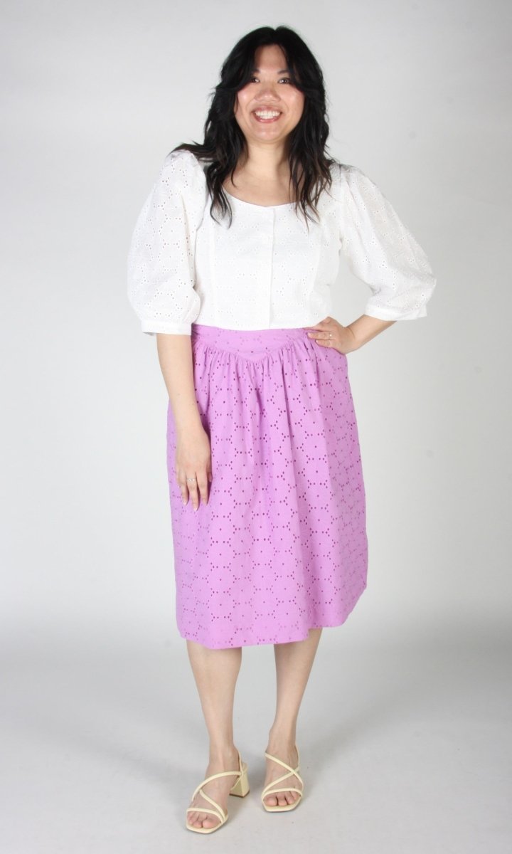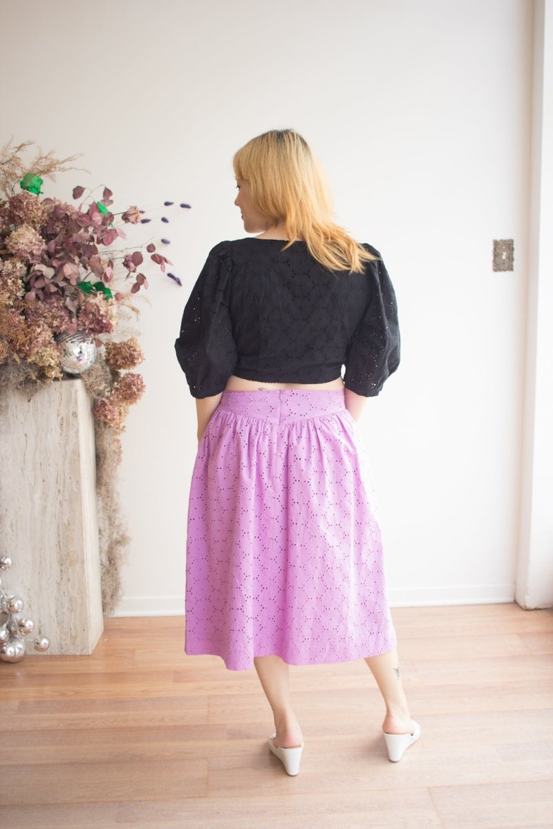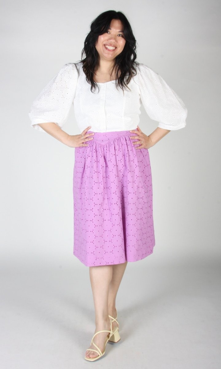 Birds of North America's Hermit Thrush skirt is a feminine classic that packs a whole lot of punch! Made from a stunning cotton eyelet, this skirt features a yoke at the waist and and is lined in a cotton voile. The Hermit Thrush will elevate any outfit, and pairs beautifully with the matching Esmerillon Top. Wear it with your favourite sandals, or sneakers for a casual elegance that can't be beat!