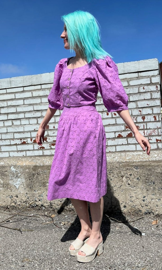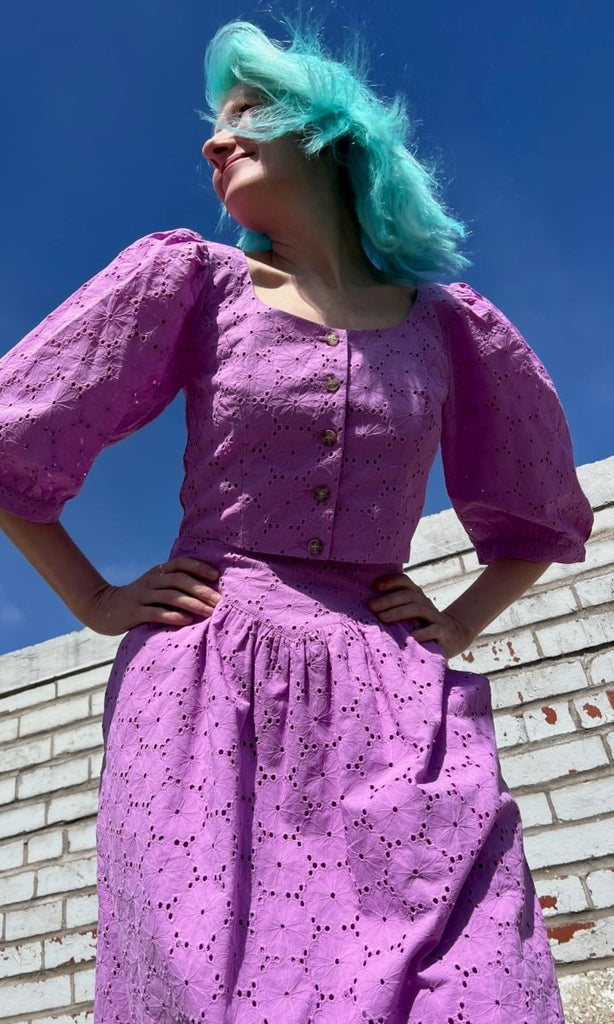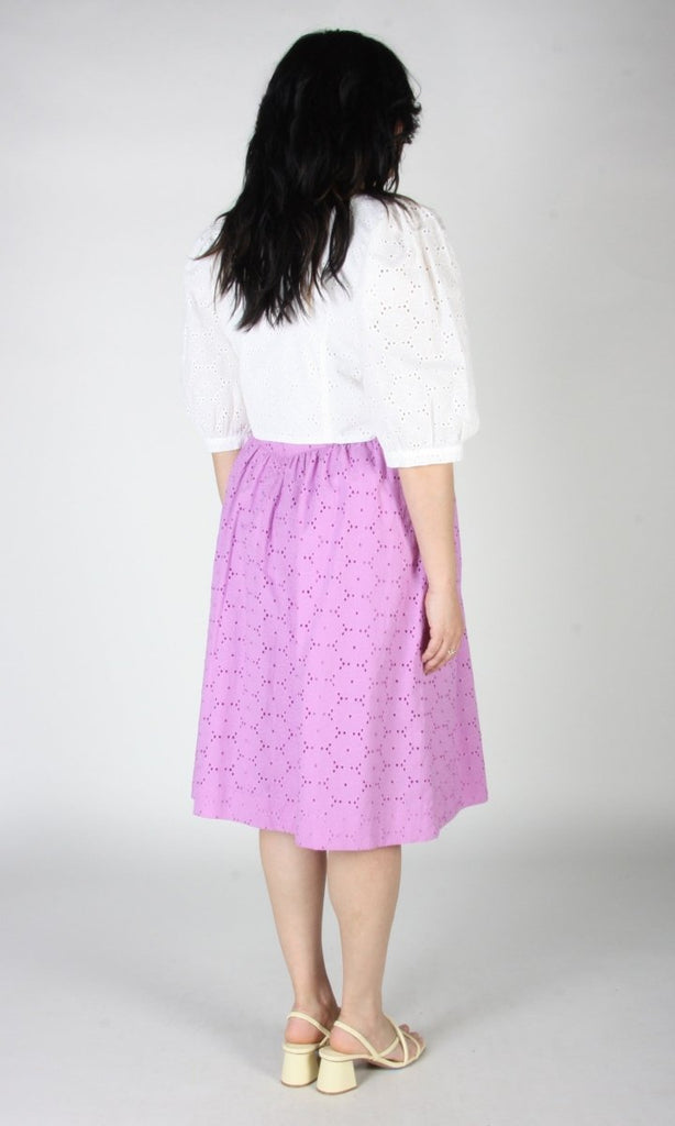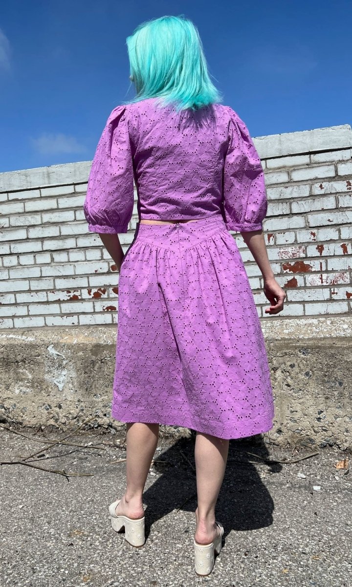 Birds of North America's Hermit Thrush skirt is a feminine classic that packs a whole lot of punch! Made from a stunning cotton eyelet, this skirt features a yoke at the waist and and is lined in a cotton voile. The Hermit Thrush will elevate any outfit, and pairs beautifully with the matching Esmerillon Top. Wear it with your favourite sandals, or sneakers for a casual elegance that can't be beat!