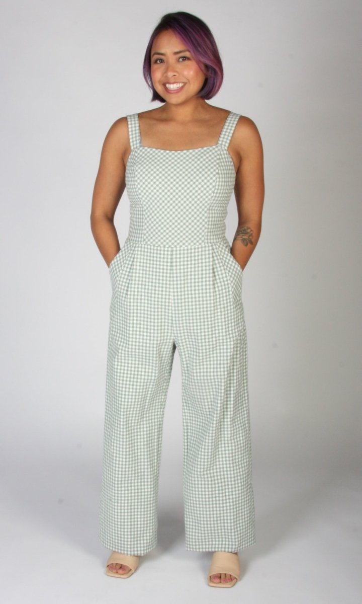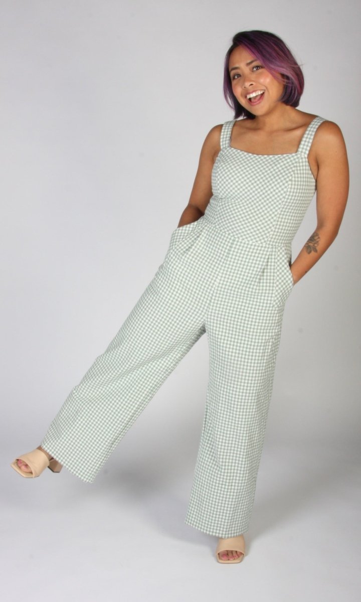Birds of North America Roadrunner Jumpsuit (Sage Gingham)