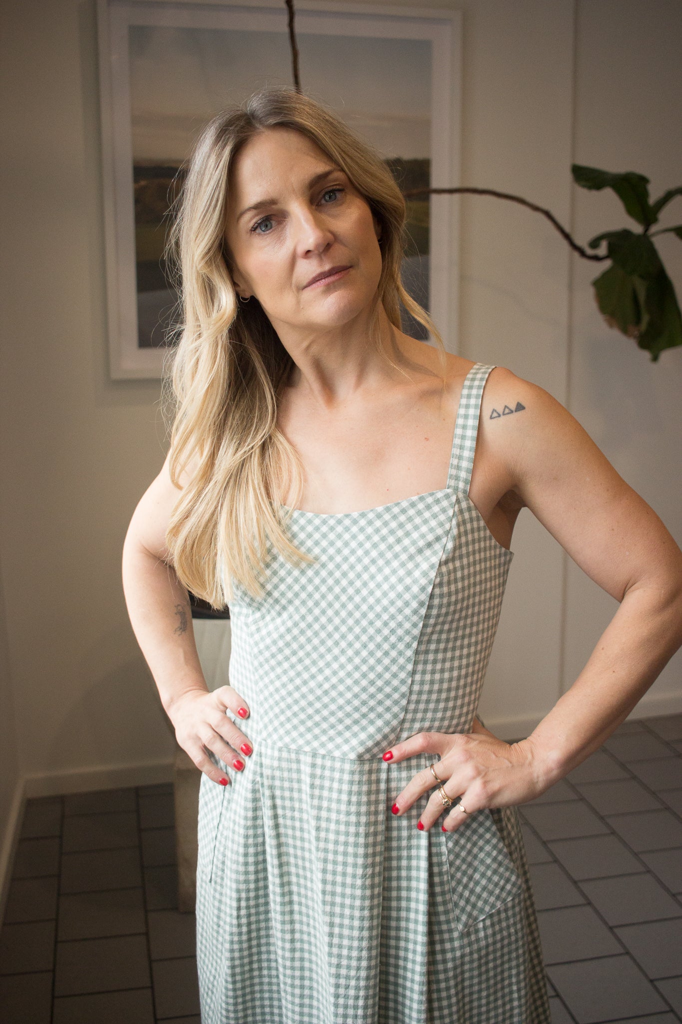 The Sparrow Hawk by Birds of North America is a tailored dress that's made of medium-weight, organic cotton gingham. It has playful directional gingham details on the top, as well as the front pockets. The neckline is faced, and it closes with a back invisible zipper.