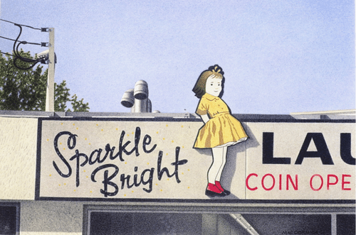Neil painted Sparkle Bright Launderette in 1994, when he lived in Victoria. He had moved out west in 1989, after growing up in Toronto, and found that certain types of things stood out to him. ‘Victoria had a really different feeling to me - in a way I was just trying to identify what exactly that feeling was. Part of it was that the culture was so different, like the trailers and campers that dotted the streets. Part of it was the time capsule feeling of things that had disappeared in Toronto before I left - old storefronts and signs especially. It was like everything I was interested in was still there - as if the era I grew up in was still represented in Victoria.’