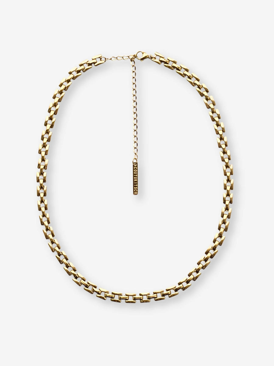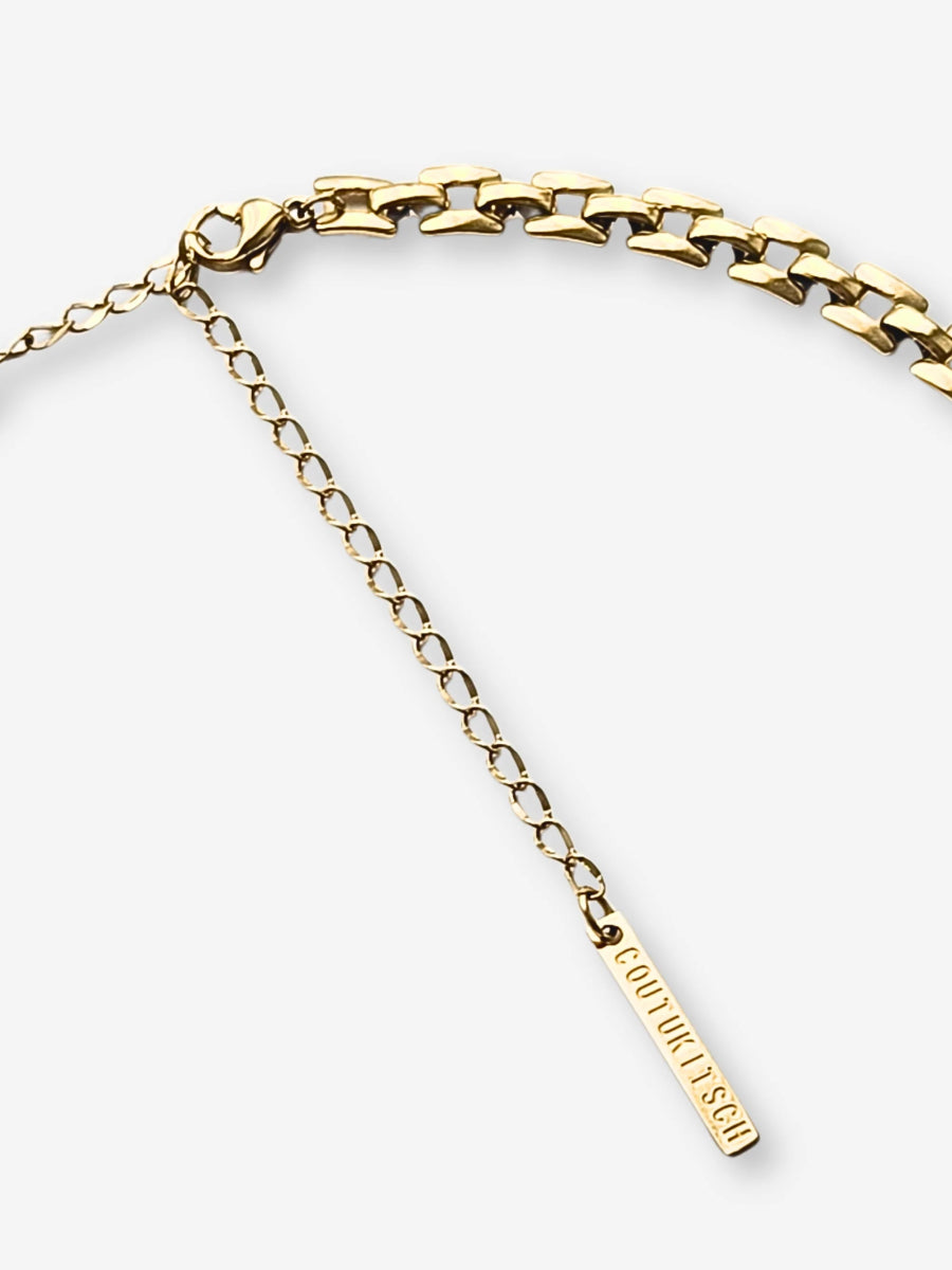 Coutukitsch's Sloan Necklace is a sleek 14" necklace that sits right above the collar bone. Perfect for layering with something longer or to wear on it's own!