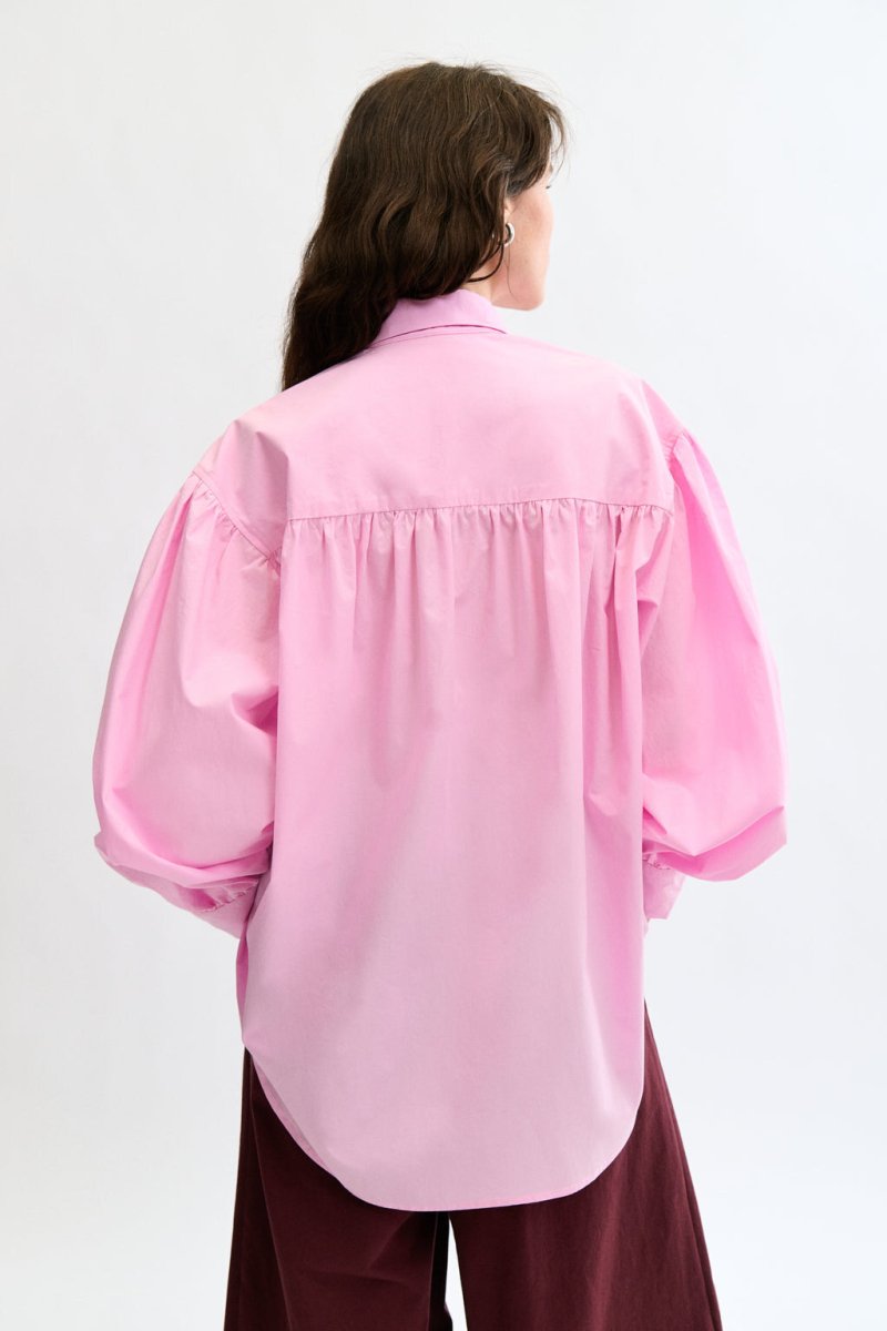 The Eliza Faulkner Wren Shirt is crafted from crisp cotton-candy pink cotton and features a classic collar with elegant balloon sleeves. The Wren feels like the manifestation of a perfect oversized buttoned up shirt - we love the cuffed sleeves, exaggerating volume throughout the arms and it's high-low hem.