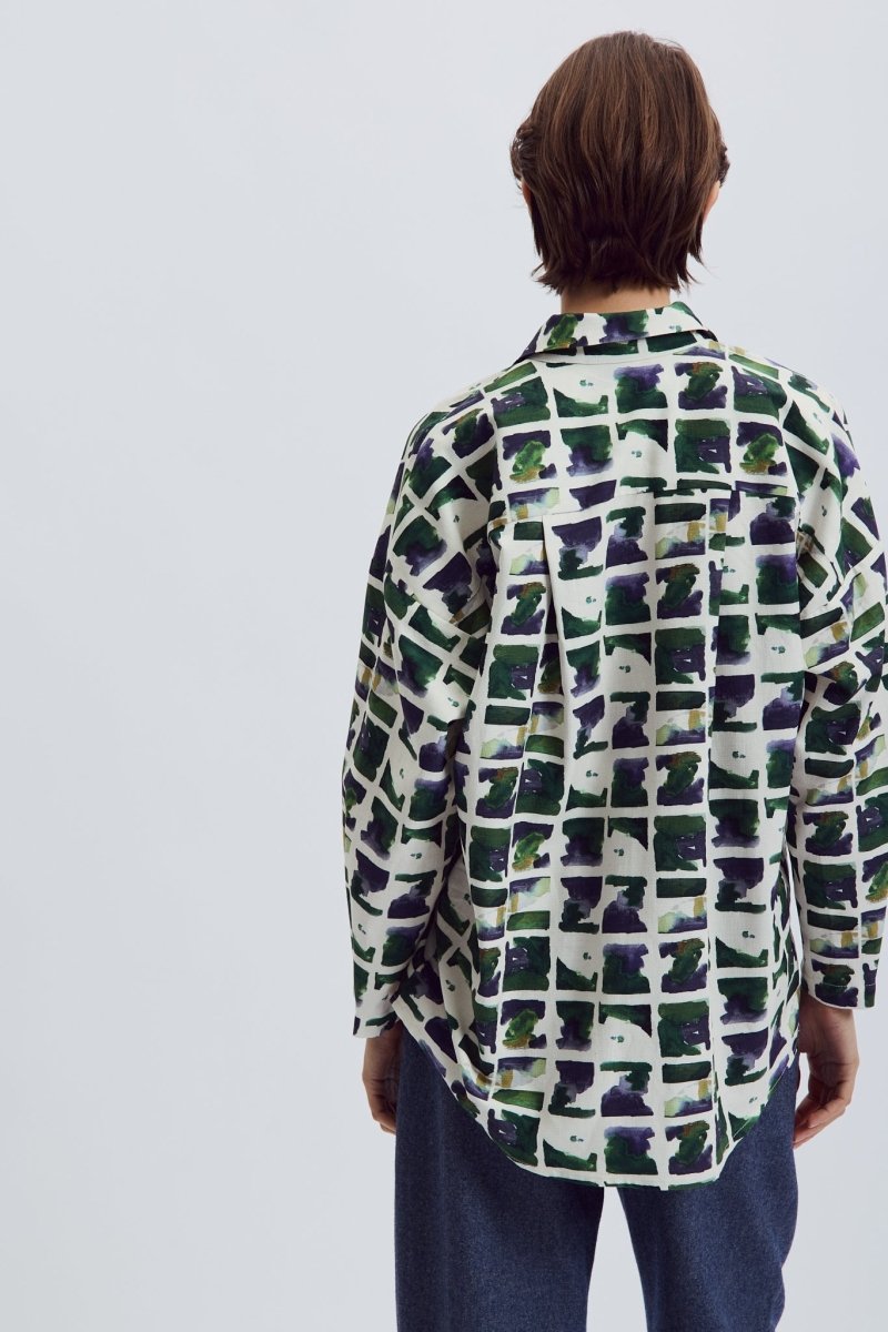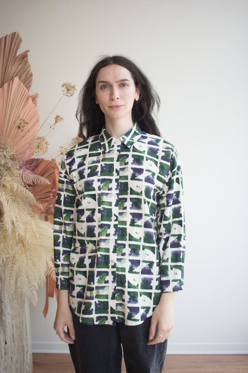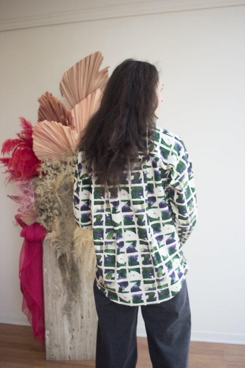 The Celeste Top by Eve Gravel is this season's version of their best selling long sleeve button-up! The Celeste is a long, slightly oversized shirt featuring a large patch pocket at the front. Ultra-comfortable, it’s perfect for any occasion, whether casual or more dressed up. The in-house designed prints make each shirt truly unique, adding a touch of originality to your wardrobe!