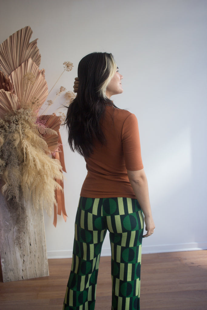 The Simon Pants by Marigold are back this season in a funky fresh new pattern! These straight-leg pants, featuring an exclusive Marigold pattern are knitted in Montreal and their form-fitting cut hugs your body in all the right ways! Pair with the matching Joe Top for a super psychedelic set!