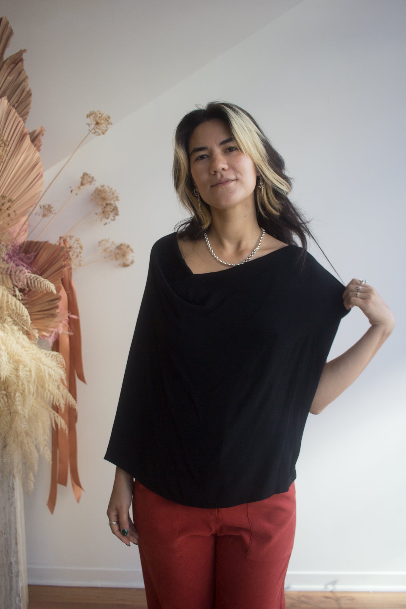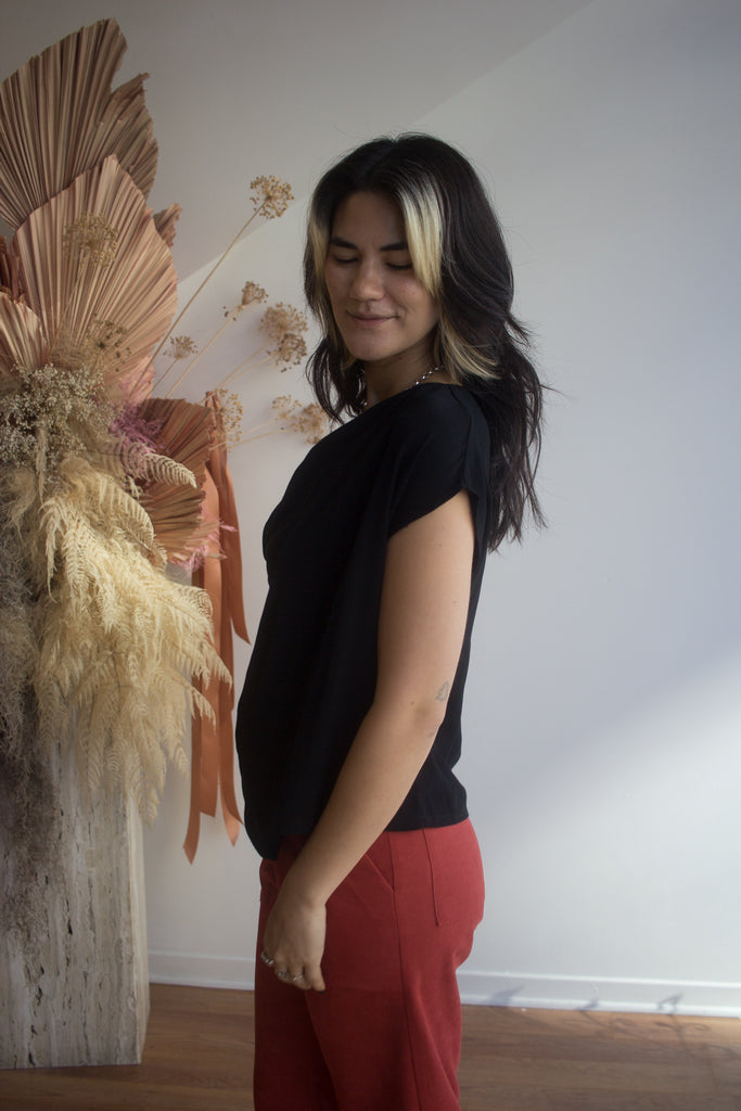The Cowl Top by Meg is as versatile as it is cute. Wear this relaxed but elegant blouse to work meetings, a night out, family gathering, or wherever your life takes you. This top can be dressed up or down easily as it looks great with work pants and boots or your favorite denim and sneakers. A front tuck at the waist seals the deal!