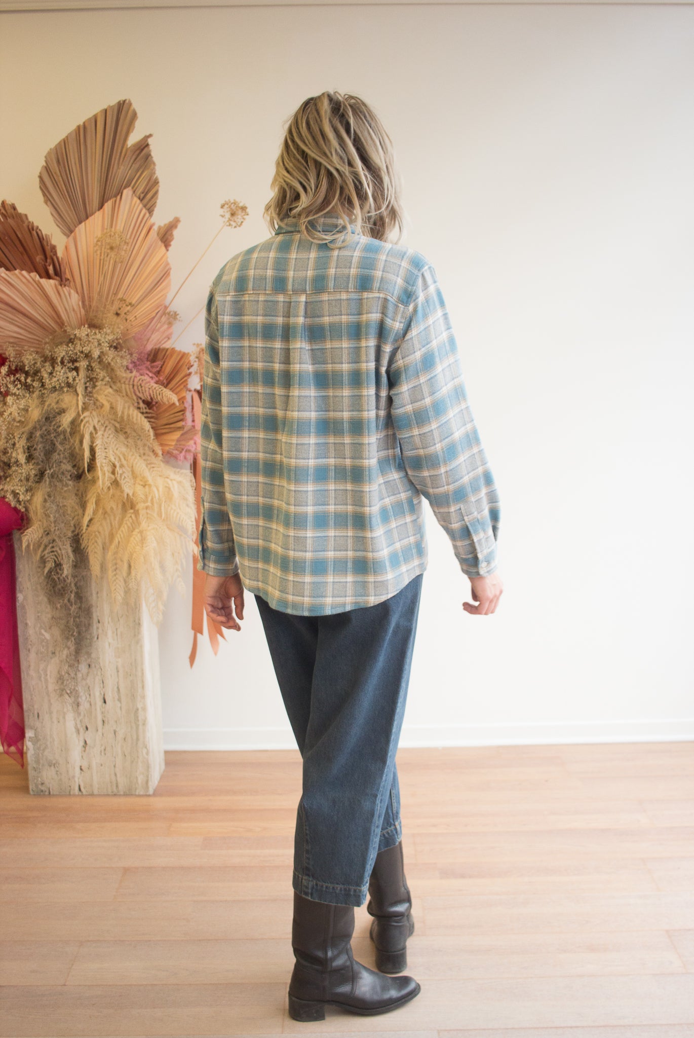 After weaving, the fabric is brushed (or napped) to raise fine fibers, giving it a plush, cozy texture. The result is a soft, easy layer that feels worn in from day one, in the best way.